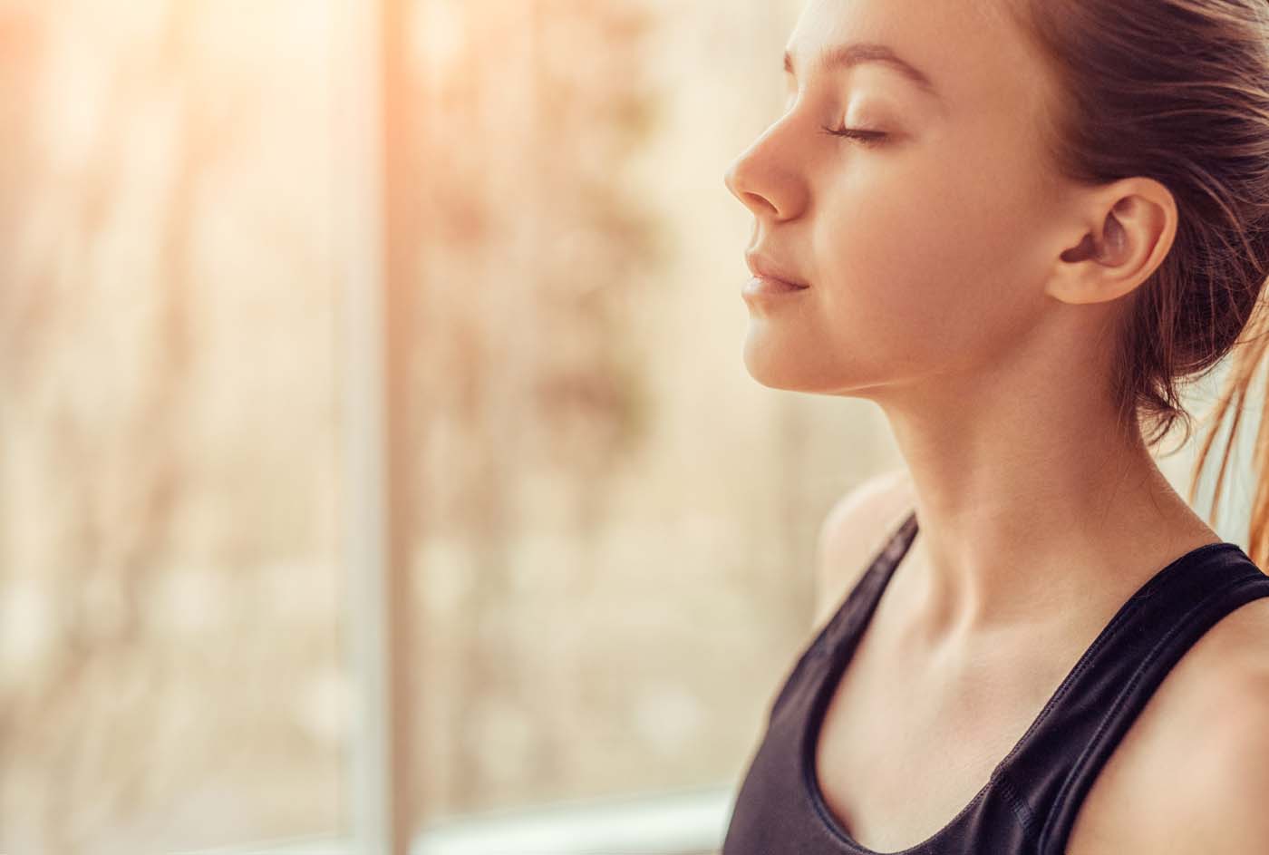 Sit with the spine upright in neutral alignment, and your eyes closed.
